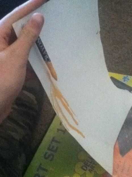 Sostenga su tarjeta o papel a vertical. Luego cabello seco el crayón. ¡ Calentar, fundir y empieza a gotear sobre la tarjeta. Cuando empieza a gotear mantenga su tarjeta en un ángulo.