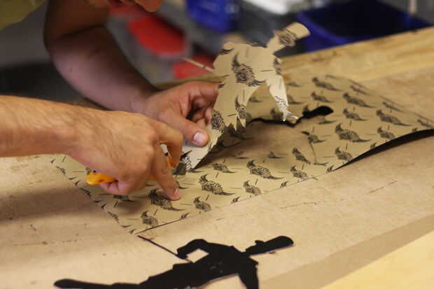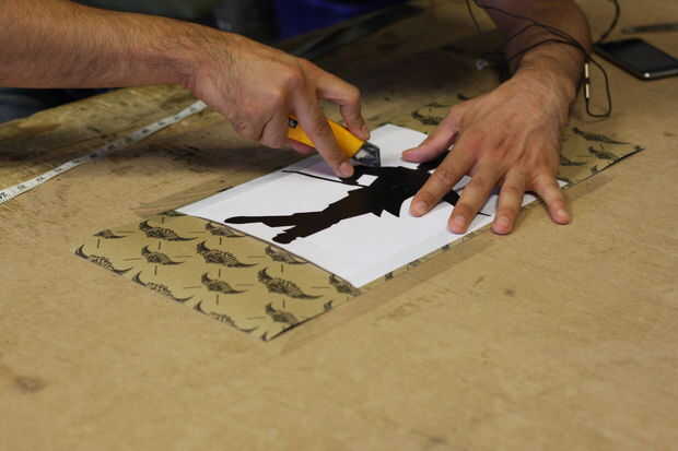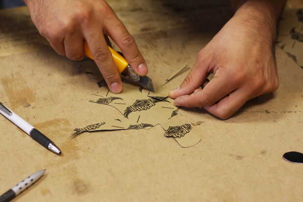 Utilizando la imagen impresa como guía, hemos sido capaces de recortar este diseño simple en unos 10 minutos con el cuchillo. Grip tape arte puede conseguir bastante intrincado si quieres que sea, por tomar su tiempo con el cuchillo durante este paso es importante.
