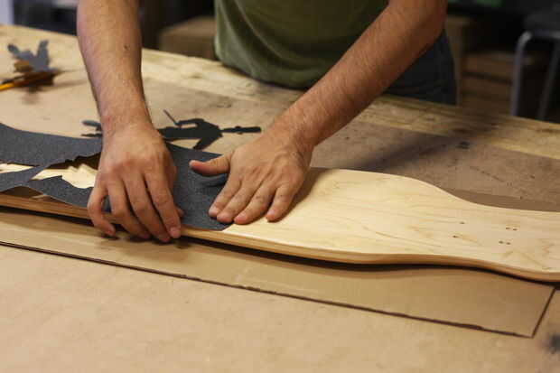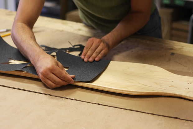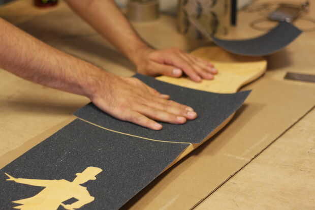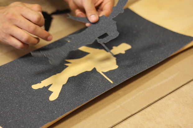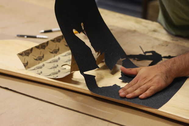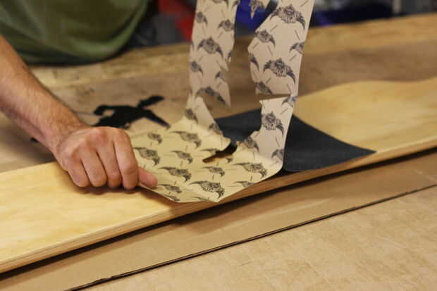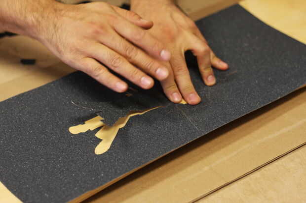 Retire el papel protector de la cinta de agarre y cuidadosamente pegue las hojas en su lugar en la cubierta. Cinta del apretón es bastante pegajosa, por lo que puede ser difícil volver a colocar una pieza si se atasca en el lugar equivocado.