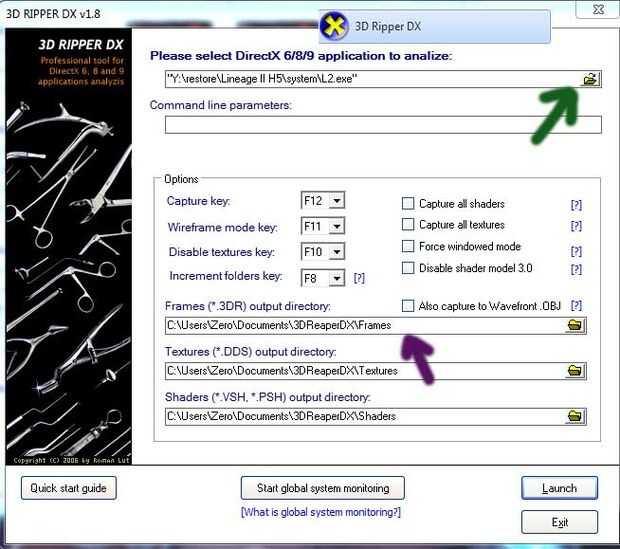 Seleccione el juego que quieres ejecutar, el comienzo de juego doesn´t hasta que usted pulse el botón de lanzamiento de 3D RIPPER DX en las opciones yo puede cambiar la tecla de captura, la carpeta donde todos los archivos van al ser capturado