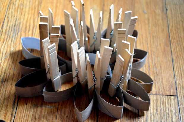 3. para asegurarse de que las estancias de la zona pegadas juntas, coloque un pasador de lavandería en el área donde pega
