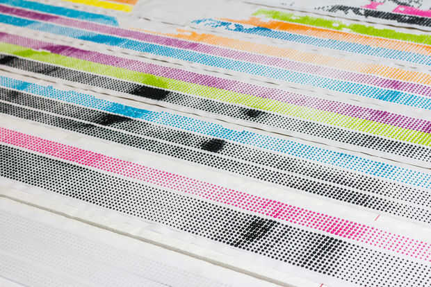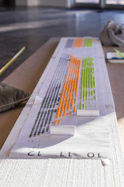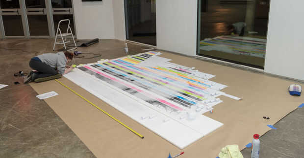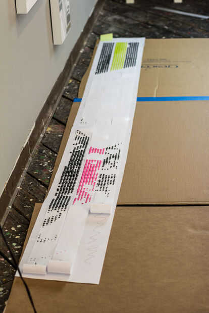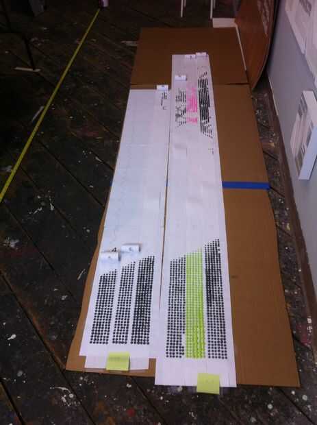 Extienda sus rollos de cinta de papel encima de la plantilla de semitono. Date espacio extra en la parte superior e inferior. Siempre puede cortar el papel hacia abajo, se puede Agregar a él.