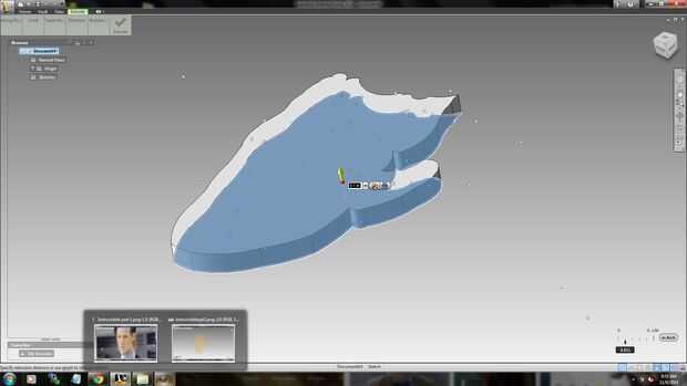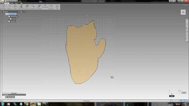 Esto es todo genial pero nuestras miradas modelo tipo has planas. De hecho, es infinitamente plana! Para solucionar esto usaremos la sacar herramienta. Ir a sólido > extrusión. Haga clic en la sección naranja (en el área de la poligonal). Notará una flecha aparecen y un cuadro de número. Estas son las maneras de sacarlo. Su primera opción es arrastrar la flecha hasta su satisfacción con la extrusión. El segundo y en mi opinión, mejor opción es entrar en una medida exacta en el cuadro número. Esto dice autodesk fusión cuánto desea que el objeto a extruir. Después de completar esto tómese un descanso! Descansar un rato y admirar tu trabajo!