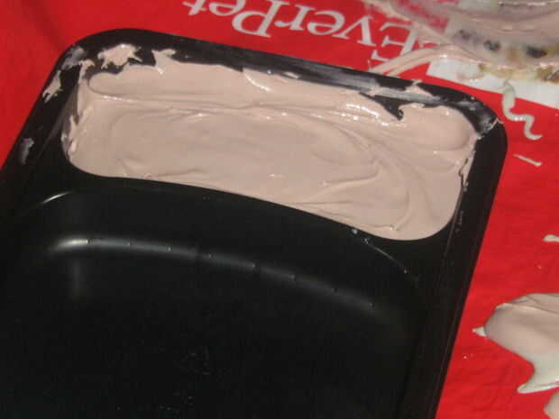 Haz primero la bandeja de la cena de TV y frotar cuidadosamente el interior con vaselina. Esto impide que la masilla se adhiera a la bandeja. Ahora mezcle una cantidad decente de la masilla para llenar la mitad de dicha bandeja. Después se mezcla bien, colocar en la bandeja y liso hacia fuera un poco para que esté nivelado y liso.