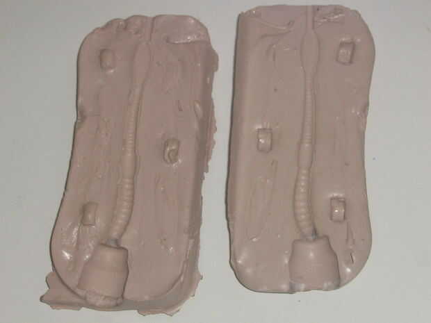 Ahora que la masilla es difícil retirar el molde de la bandeja y levante las dos piezas separadas. Deben ser fáciles de conseguir aparte con la ayuda de un cuchillo. Una vez que están separados, eliminar todo lo que solíamos hacer, incluyendo el señuelo, dejando sólo las dos piezas de masilla endurecida. Ahora tenemos un molde de dos partes para hacer una réplica de 1-1 de su señuelo. Impresionante, ¿verdad?