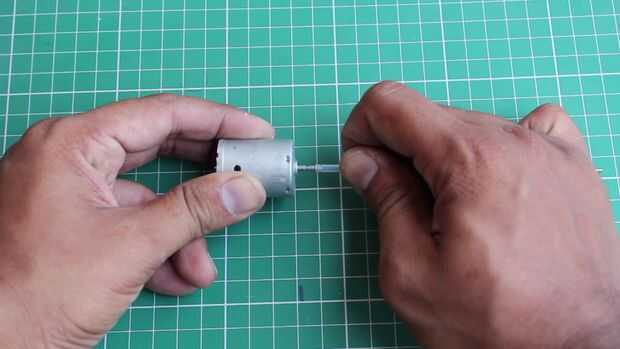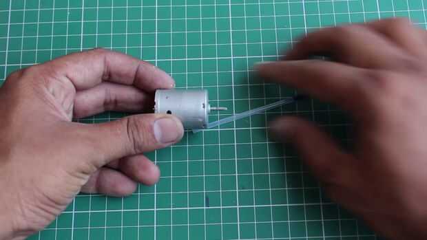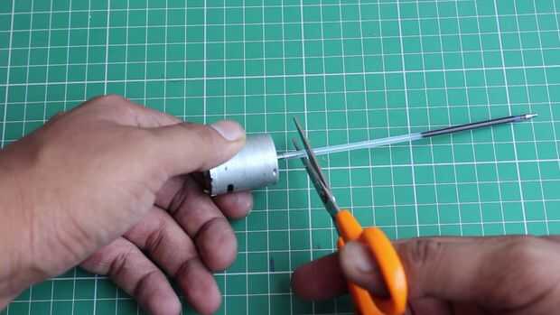 1. tomar el juguete de 12 v CC motor y a la varilla giratoria Fije el repuesio de la pluma de bola punto y presione para apretar.