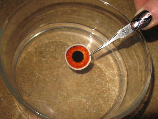 Coloque la superficie "impresa" de su traslado a la parte posterior (plano) de la córnea. Lugar donde los quieren y sellar con una capa de pincel en el esmalte. Déjelo secar.