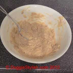 Añadir la harina poco a poco a la vez. Según aceitoso como el atún es, usted no puede tener que usar el entero 3/4 de taza de harina. Lo que desea es para que la masa que tiene la consistencia de puré que se puede ver en la siguiente imagen.