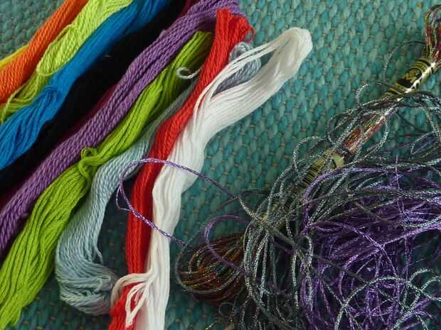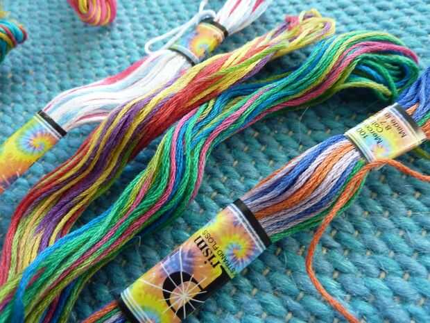 ~ Seda bordado--usted puede encontrar esto en cualquier tienda de artesanía (Jo-Ann, Michaels, ect.) en toneladas de colores. En la misma sección de la tienda también hay otros hilos más metálico y brillante. Son un poco más difíciles de utilizar porque las hebras como desentrañar y son más un desafío para mantener juntos. Se ven genial, sin embargo. También hay hilo Tie-Dye. Si quieren muchos colores diferentes pero realmente no quiero tener que cambiar madejas de hilo todo el tiempo, el hilo de atar-teñe es mejor para usted. He utilizado todos estos tipos de hilos en este instructable.