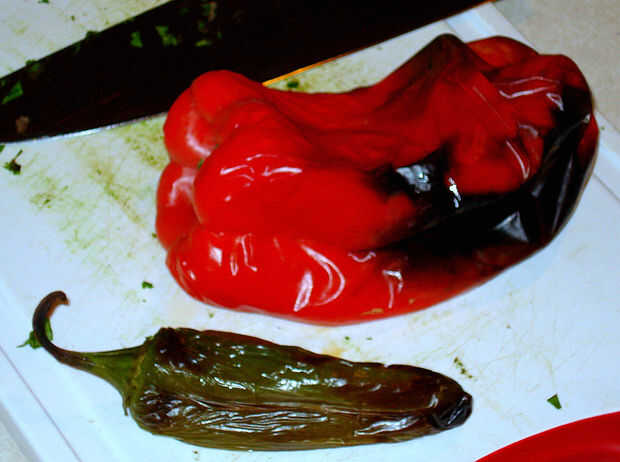 Paso 6: Retire del horno el pimiento rojo y Jalapeño
