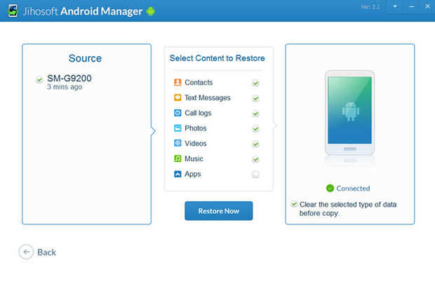 Si usted accidentalmente perdido/borrado archivos en su dispositivo android, con los archivos backup que acaba de realizar por el administrador de Jihosoft Android, puede hacer fácilmente la recuperación.
