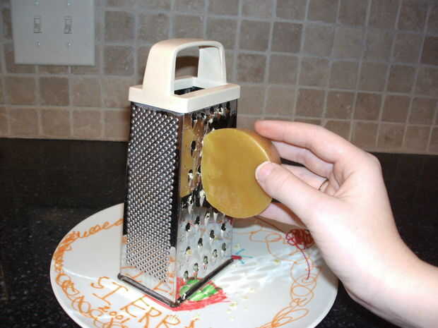 Colocar una placa en el rallador y grado 2 onzas de cera de abeja.