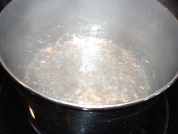 Llene la olla hasta 3/4 de la manera y lugar en la estufa hasta que el agua comience a hervir.