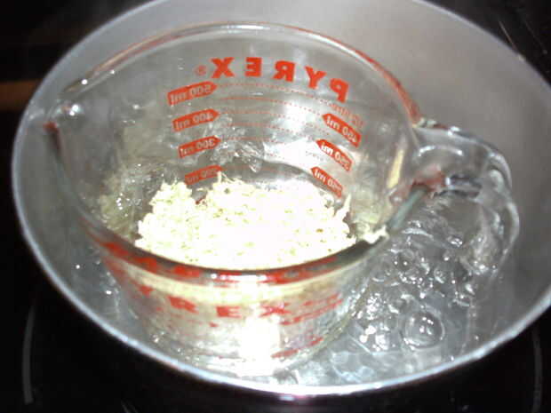 Poner la taza Pyrex en el agua y convertir el calor a fuego lento.