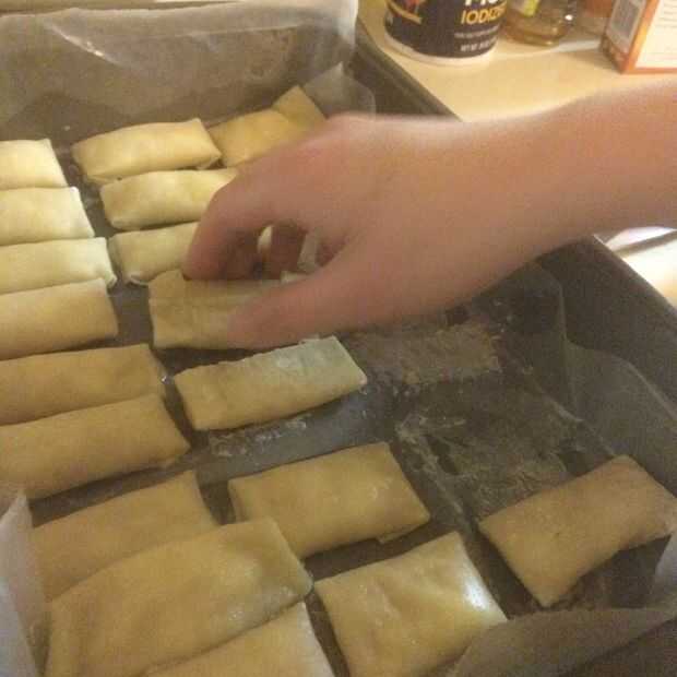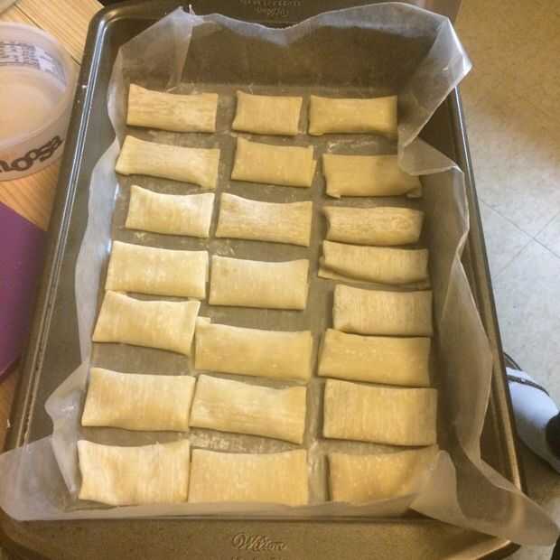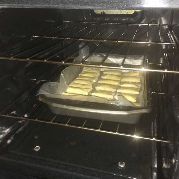 5. Utilice una cuchara o tenedor para voltear cada almohada para octavos de final de la hornada.