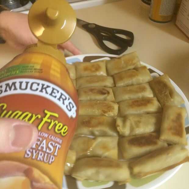 4. rociar algunos del jarabe de arce en las almohadas y están listos para servirse.