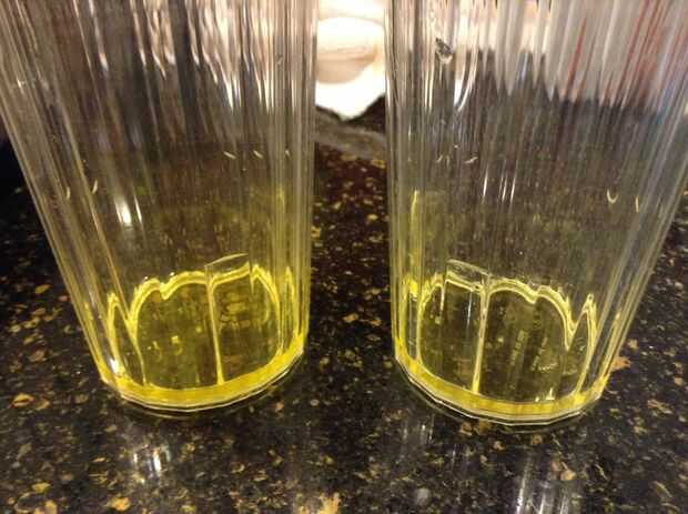 Verter una cucharada generosa de la banana extracto en la taza por lo que forma una capa delgada en la parte inferior.