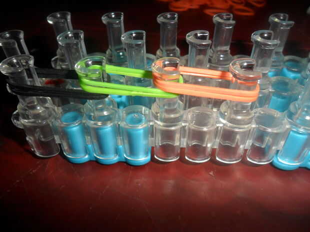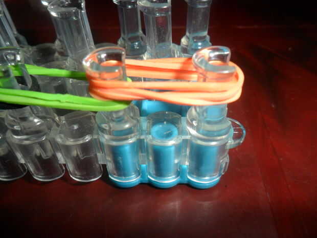 Como hacer bandas tirachinas con un telar de arco iris. (2 / 6 paso)