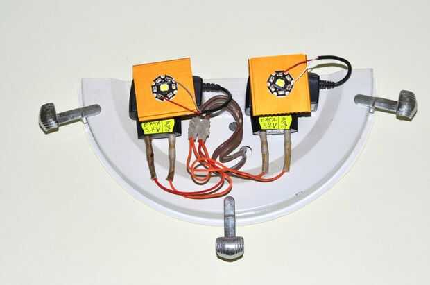 Para el hall de entrada utiliza dos Cree MX6 Q5 LED cada uno con una potencia máxima de 3W y salida ligera máxima de 278 lúmenes, cada uno alimentado por una fuente de alimentación de viejos teléfonos móviles de Samsung. Aunque la corriente especificada por el fabricante es 0.7A para cada fuente de alimentación, después de las mediciones he encontrado que se limita al valor de 0.75A.