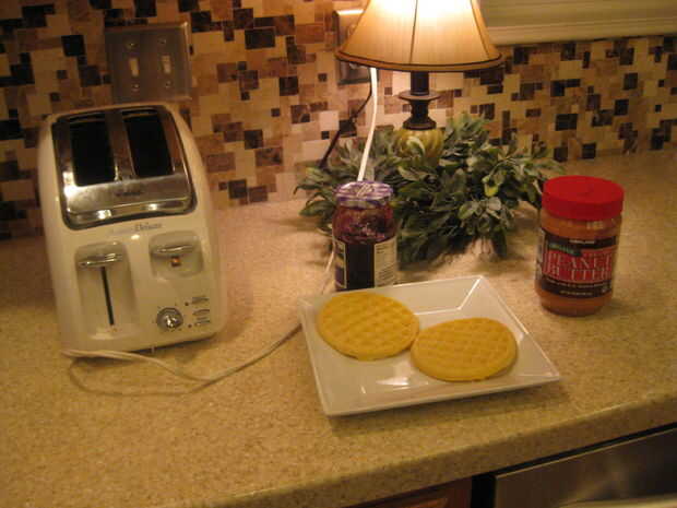 Esto es bastante fácil (puede usted seguir meh? mmkay) 2 gofres Eggo Jalea (su tipo de fav, prefiero Smuckers uva) Mantequilla de maní Una tostadora Cuchillo de confianza mantequilla de maní y jalea cuchara