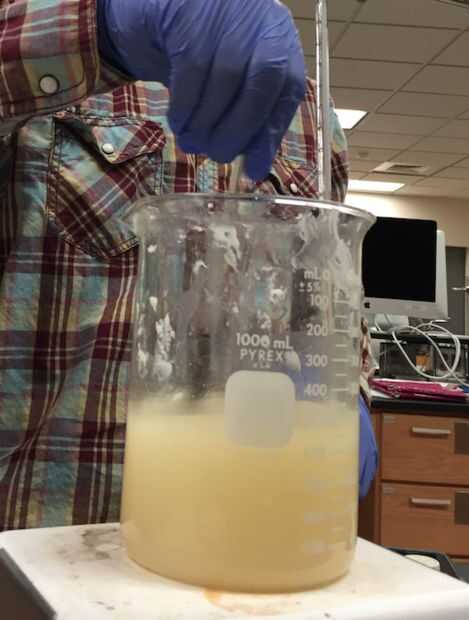 El calor se funde por las grasas en forma líquida que pueden solidificar con el aceite de coco. El proceso de solidificación de la solución de jabón lleva bastante tiempo. Usted quiere asegurarse mezclar los ingredientes bien, para que solidifique en forma mezclada, no en dos capas separadas.