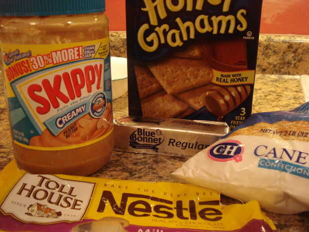 son tan, tan bueno y fácil no hornear snacks.Paso 1: ingredientes Cacahuate estilo grueso (lo barato es tan bueno si no mejor)Galletas GrahamSorbetoDerretir chocolatePapel encerado o papel de aluminioPaso 2:Empezar por aplastantes 4 plazas todo de ga