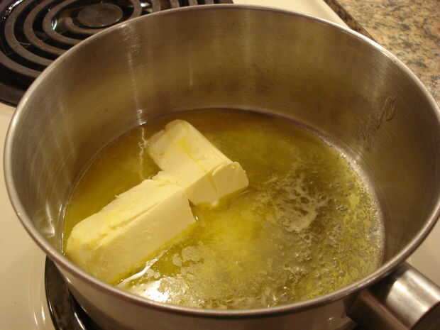 Derretir 1/2 taza de mantequilla a fuego lento.