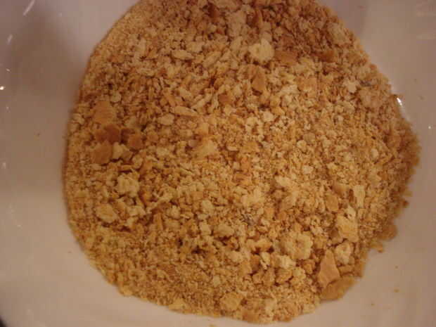 Añadir migas de mantequilla de maní y galletas graham, revolviendo hasta que esté cremosa.