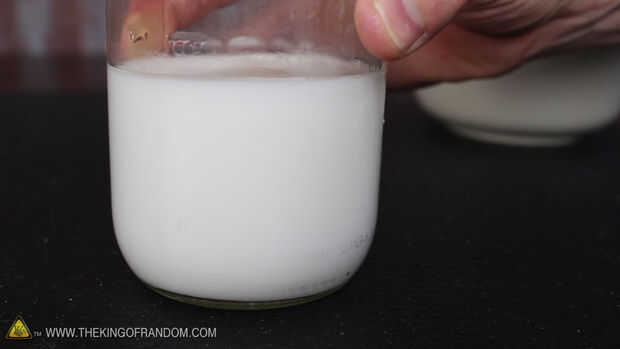Ahora si tratas que verter todo, se puede ver una nueva capa blanca se queda en la parte inferior del tazón de fuente.