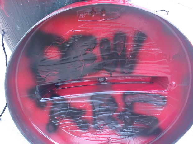 gire un combustible de sobra militar o bidón de agua en un bote de basura tapa con bisagrasPaso 1: Decaptiate jerry puede ADVERTENCIA: este paso consiste en cortar un viejo gas puede. Incluso si la lata es hueso seco, vapores residuales pueden inflam
