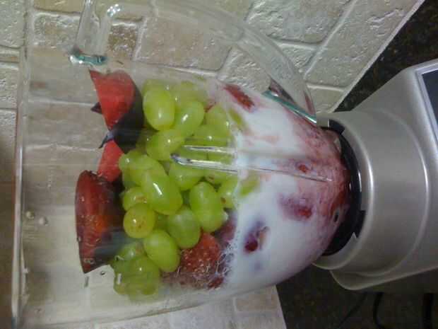 Si el batido es demasiado grueso - añadir más leche o jugo, si es demasiado delgada - añade más fresas congeladas. Para agregar dulzor agregue más jugo de frutas o un poco de miel, si es demasiado dulce añadir más leche o yogur.
