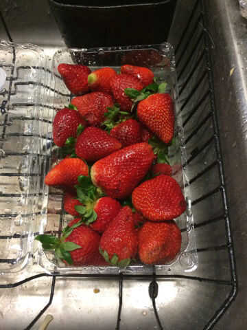 El siguiente paso es poner 2 fresas en la licuadora con las coronas de corte. No encienda la licuadora todavía.