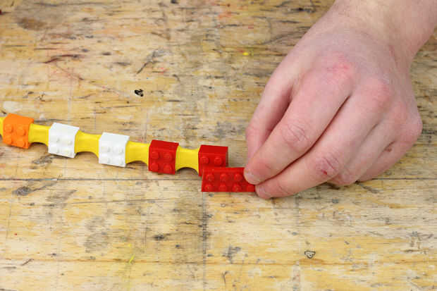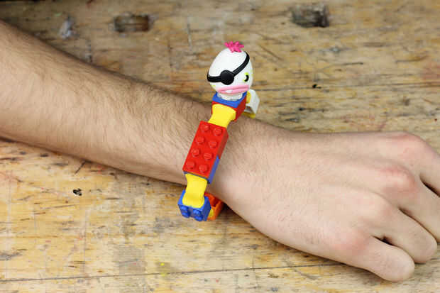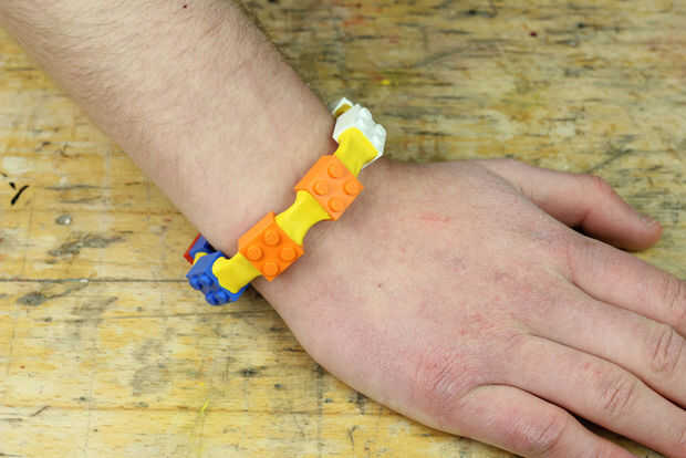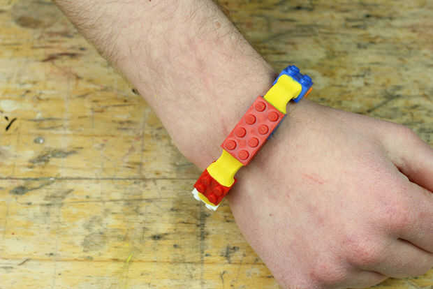 Puede hacer un impresionante brazalete LEGO envolviéndola alrededor de su muñeca y usando una pieza plana de 2 x 4 para conectar los dos ladrillos final de tu pulsera.