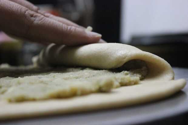 Ahora preparamos la Bhakharwadi de la masa y el relleno.