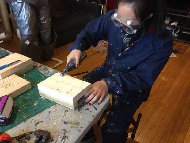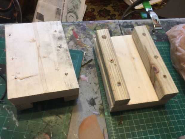 4. tomar 4 piezas delgadas de madera (cerca de 1 pulgada gruesa y sin embargo larga su dos piezas) y les por debajo del taladro para que estés aún más elevado. (foto 4)
