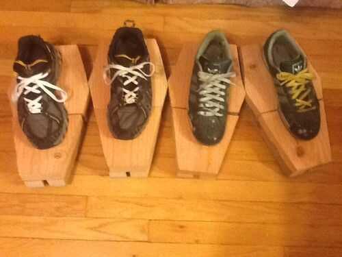 8) fije en el zapato todo en espuma de EVA. puede utilizar alguna espuma EVA para actuar como "separadores" a cada lado de los tablones de madera para ayudar a retener la forma. (foto 6)