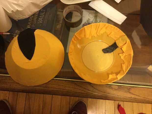 3. Tome su tela negra y el pegamento sobre el amarillo para crear el ojo