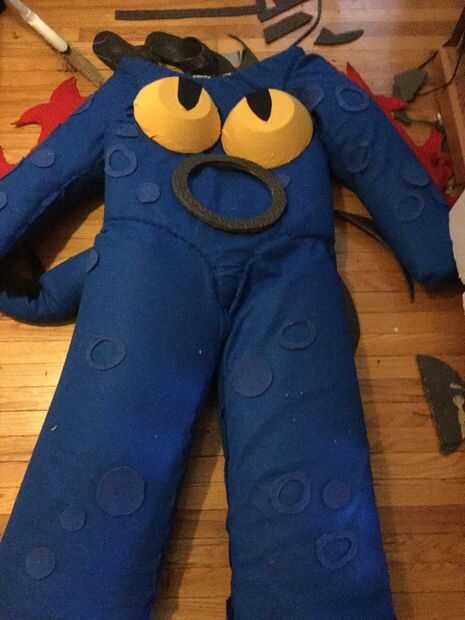 1. el traje de Fredzilla y varios puntos en él. Algunos son "O" y algunos son solamente círculos. Usé tazas que me ayude a cortar varios tamaños.
