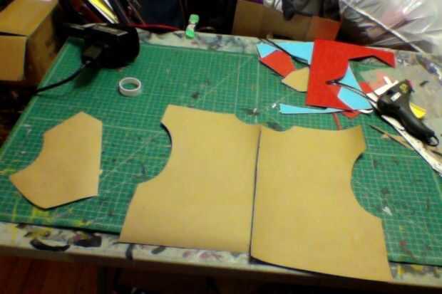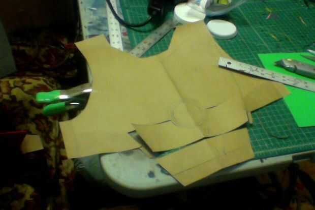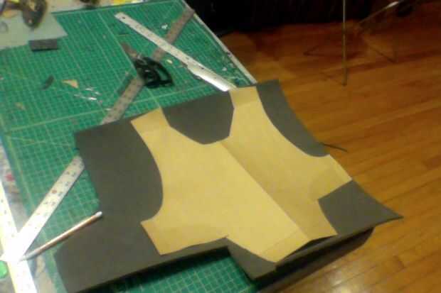 9) a partir de ahí, tomar las plantillas de papel y dibujar en tus detalles adicionales, tales como placas adicionales, piezas pectorales, etc... Básicamente cualquier cosa que desee elevada... Puede utilizar arte espuma o espuma EVA, dependiendo de cómo gruesas quieras que sea. cortar las secciones (foto 10, 11)