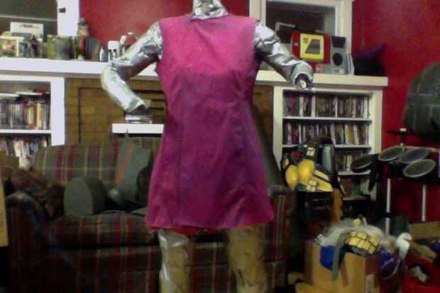 2) luego, cosí la chaqueta cerrada por lo que ahora era un vestido. (Foto 1)