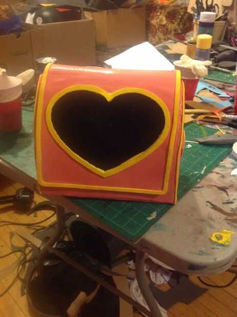 1) comenzar haciendo la forma general de la bolsa de espuma de EVA. Yo quería hacer funcional, así que sabía que iba a ser hueco. Por lo tanto, cortar 2 piezas laterales, un fondo y un frente y la espalda. Unir todas las piezas. Asegúrese de que el tamaño es correcto. (Foto 1, 2, 3)
