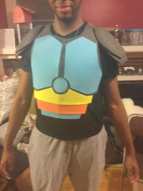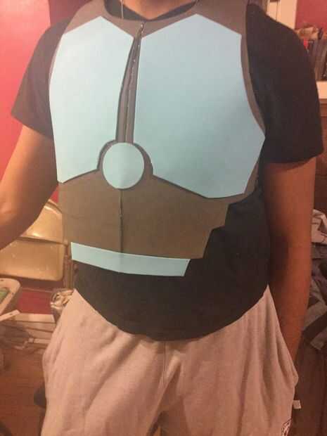 10) a partir de ahí, tomar las plantillas de papel y dibujar en tus detalles adicionales, tales como placas adicionales, piezas pectorales, etc... Básicamente cualquier cosa que desee elevada... Puede utilizar arte espuma o espuma EVA, dependiendo de cómo gruesas quieras que sea. cortar las secciones (Foto 9, 10, 11, 12)