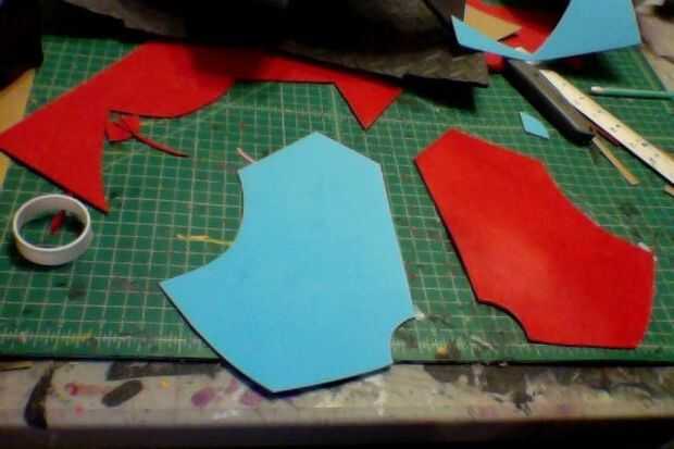 4) cortar estos de la espuma de EVA (foto 4). A partir de ahí, empecé a cortar los segmentos de la armadura de Wasabi. Recuerde que tiene 3 niveles debajo de sus pectorales.
