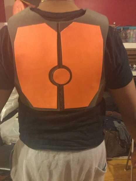 9) ahora más espuma y ponerlo en las secciones de hombro. Acaba de tomar algunos espuma extra, colocada en el espacio vacante donde la correa de hombro sería, márquelo y luego cortarlo. Pegamento en su lugar una vez terminado.