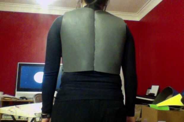 7). a partir de ahí, cortar la pieza posterior en medio donde está el pliegue. La razón de esto es que la espalda no es perfectamente plana. Se verá mejor si la armadura se contornea más a su cuerpo. (foto 7)