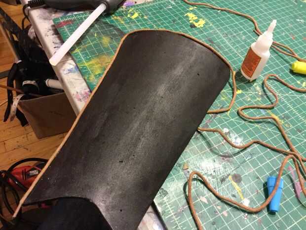 4) tomar sus cordones del zapato marrón y poner en el borde de las espinillas (Foto 3)