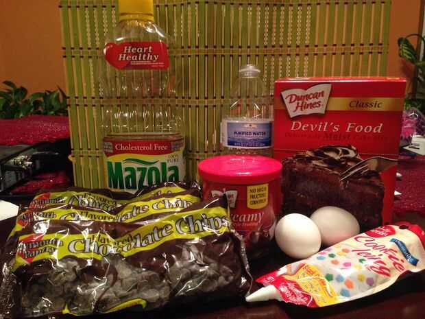 Ingredients:~ 1 mezcla para pastel (18,25 onzas) paquete~ 1 (16 onzas) envase prepara el glaseado de chocolate~ 1 (3 onzas) de la barra pasteleros con sabor a chocolate de la capaUsted puede comprar estos artículos en su tienda local de comestibles.P