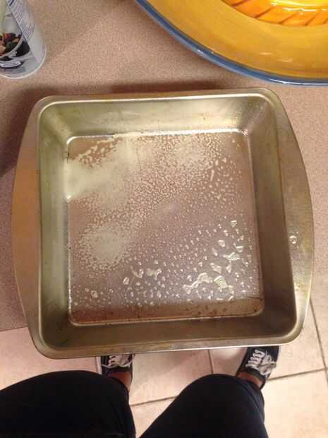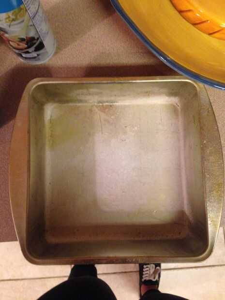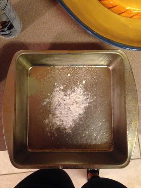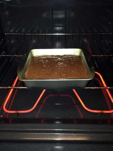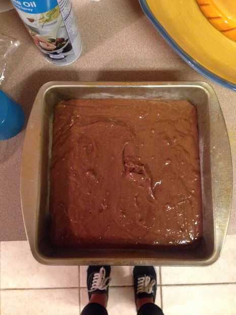 Después de la se mezcla la torta, luego precalienta el horno a 350 grados mientras pones la torta en una sartén. El pan debe ser rociado con aerosol de aceite vegetal y cubierto con una fina capa de harina blanca para que el pastel no se adhieren a la sartén cuando esté terminado. La mezcla de pastel entonces debe cubrir el resto de la bandeja y colocar en el horno durante 30-40 minutos, dependiendo del tamaño del recipiente o hasta que la torta se cuece al horno completamente. Comprobar con un palillo para ver si debe añadirse el tiempo.
