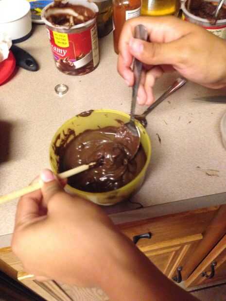 Ingredients:~ 1 mezcla para pastel (18,25 onzas) paquete~ 1 (16 onzas) envase prepara el glaseado de chocolate~ 1 (3 onzas) de la barra pasteleros con sabor a chocolate de la capaUsted puede comprar estos artículos en su tienda local de comestibles.P