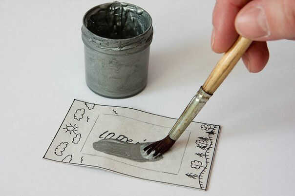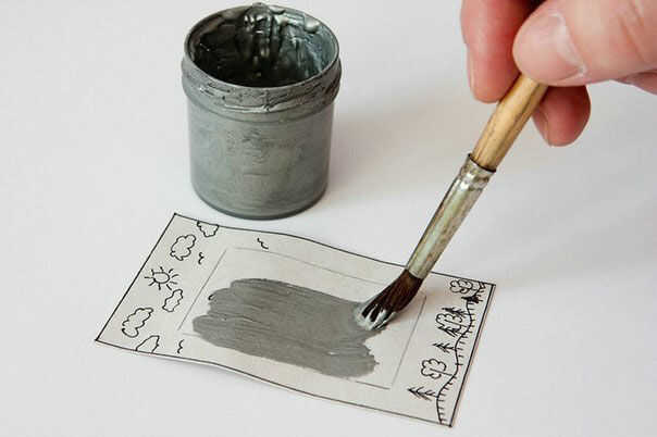 Cuando el jabón se seca para arriba, es posible pintar sobre un gouache de rectángulo. Para imitar un metal cubierta que suele hacer en esas entradas, utilizamos el gouache plateado. Ahora es necesario esperar solamente completo secado de la pintura...
